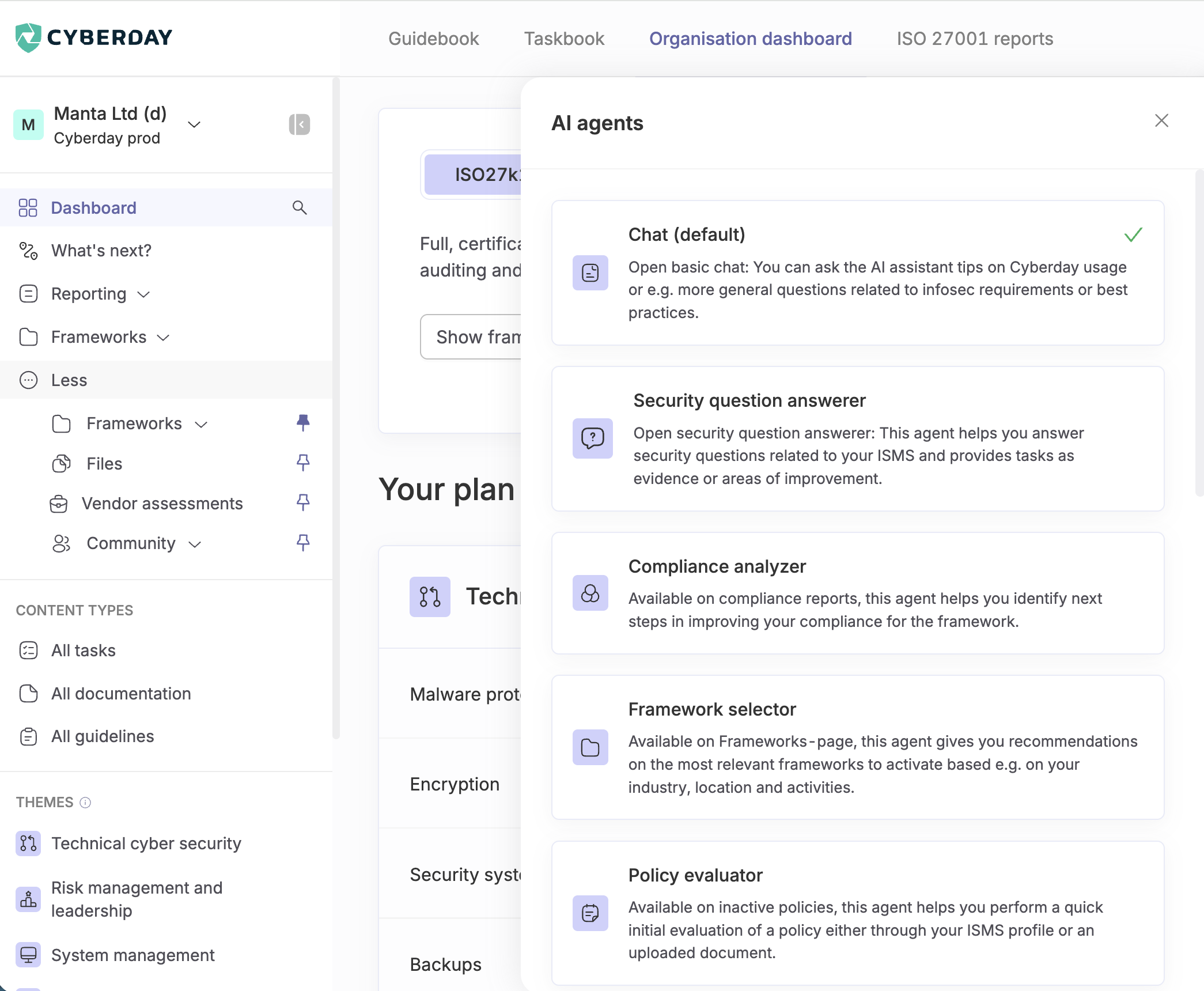 Uusi tietoturvakysymysten vastaaja-agentti on nyt käytettävissä AI-avustajan valikosta.